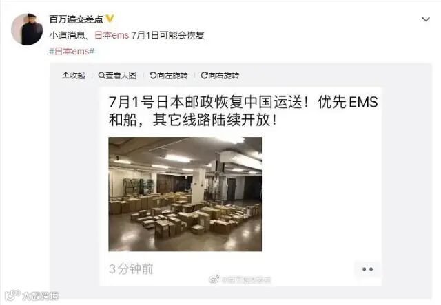 不过,最近几天有自媒体或微信朋友圈在盛传一个消息,即日本EMS将于7月1日恢复发往中国的包裹。