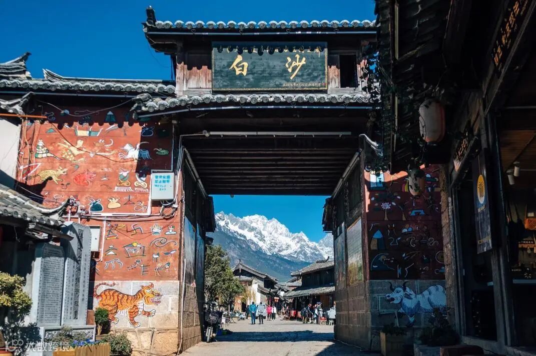 08:30 抵达抵达【白沙古镇】,这里是木氏土司的发源地,老街两侧保留着明代壁画馆和打铜匠铺,抬头可见玉龙雪山仿佛触手可及。可以点一杯咖啡,露台直面雪山,随手一拍就是电影画面。
