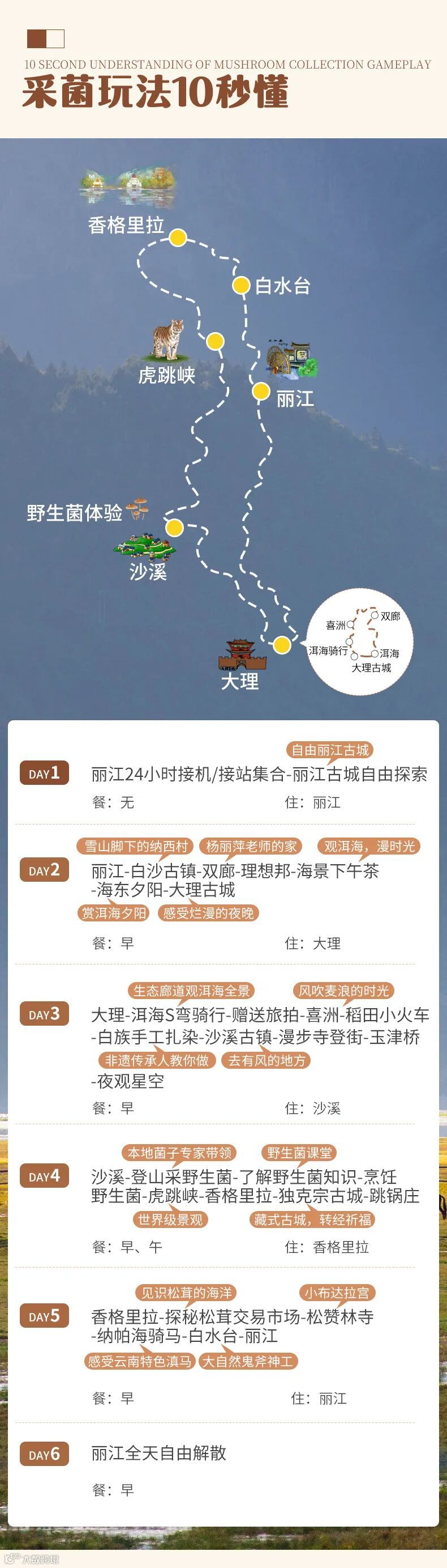 沙溪-登山采野生菌-了解野生菌知识-烹饪野生菌-虎跳峡-香格里拉-独克宗古城-跳锅庄(约210KM,车程约3小时)