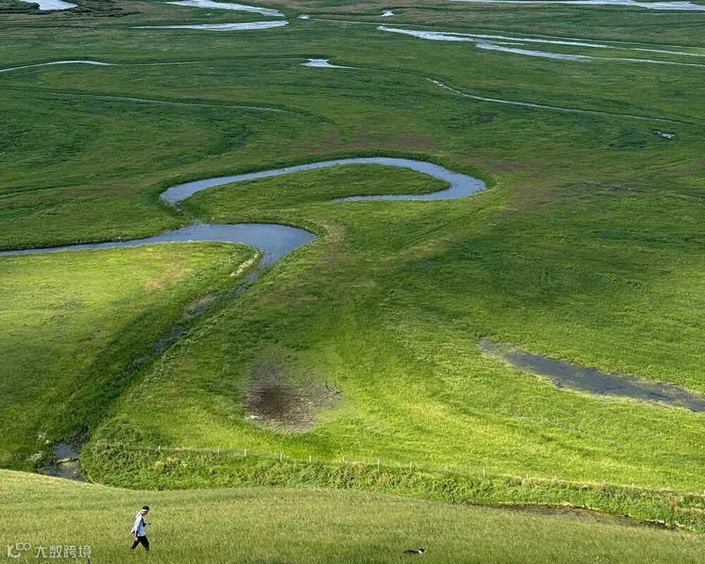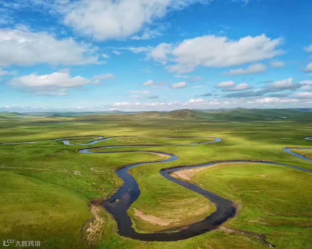09:00 我们一路向北,沿途欣赏老舍笔下的天下第一曲水【莫日格勒河】,成群的牛羊点点绽放,点缀在青绿色的草原之中,仿佛一幅动人的悠然油画。