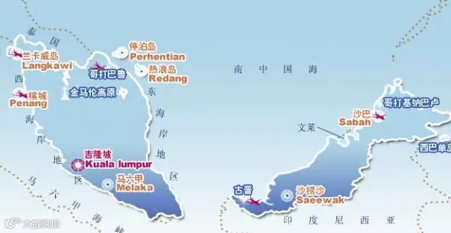 马来西亚主要分为东马(亚庇、仙本那、古晋、沙捞越)、西马(吉隆坡、马六甲、大小停泊岛、热浪岛、槟城、兰卡威、怡宝)