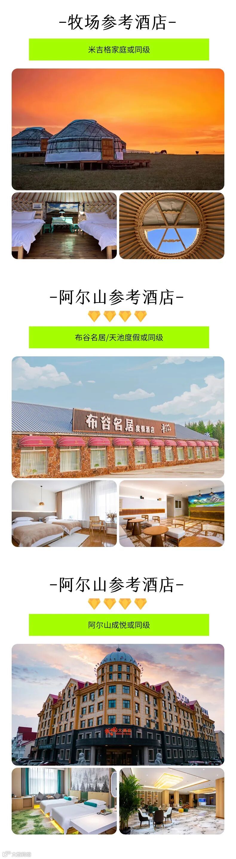 2、 如遇旺季景区内住宿无房,改到阿尔山市区入住,差价现退。