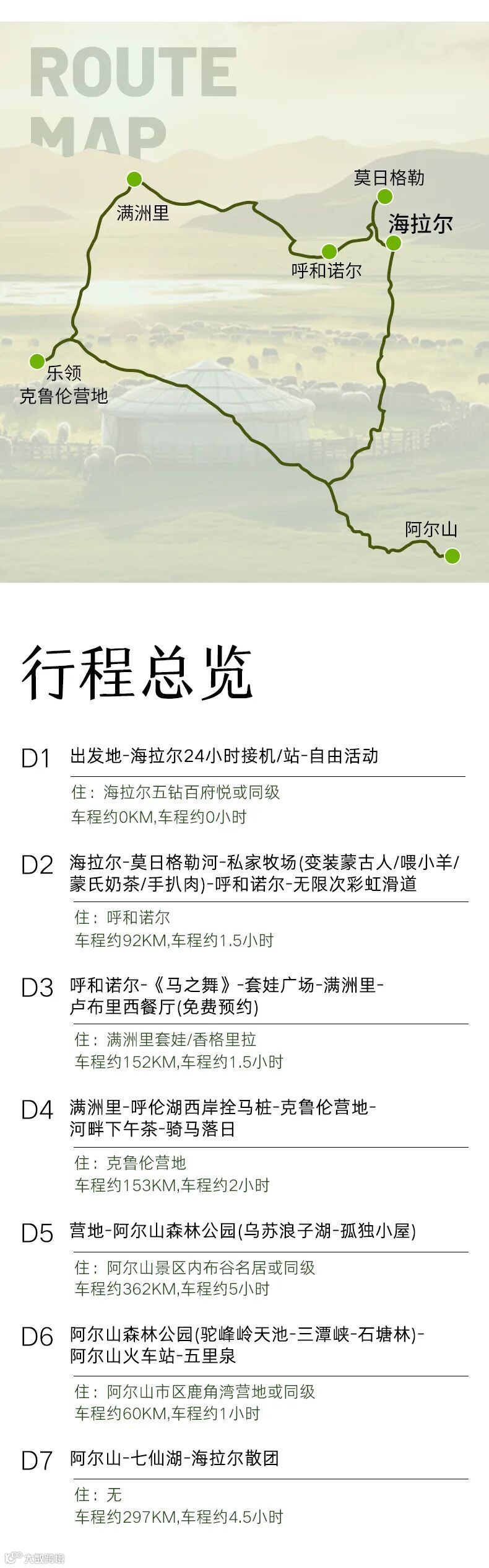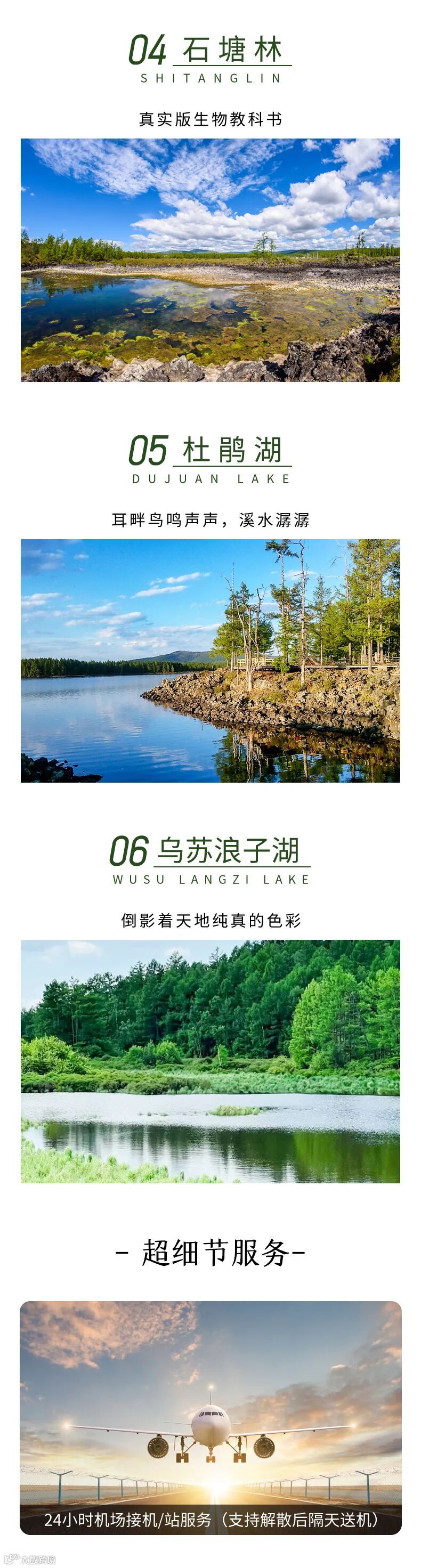 3、 阿尔山景区较大,我们甄选精华景点走完,根据实际情况可能会有先后顺序调换,行程时间仅供参考
