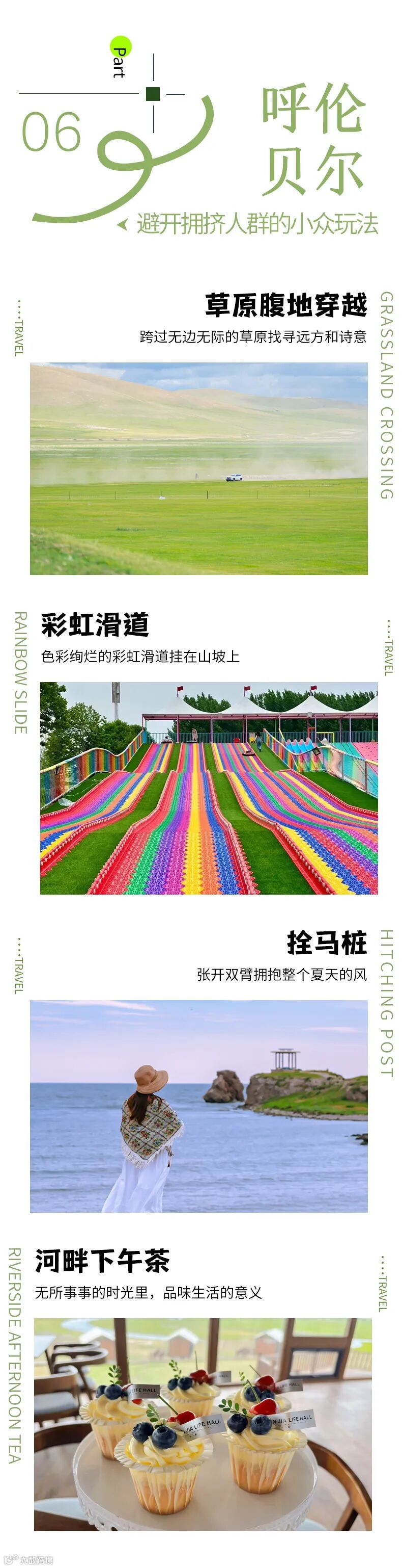 海拉尔-莫日格勒河(40KM,车程约1小时)-私家牧场-呼和诺尔(80KM,车程约2小时)-无限次彩虹滑道