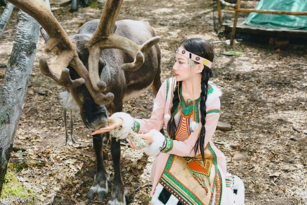 09:30 适时抵达【敖鲁古雅使鹿部落】,我们在这里可以了解古老的鄂温克民族的习俗,近距离接触圣诞老人的座驾-驯鹿,驯鹿性情温顺,亲近人类,大家可以摸摸它们哦~