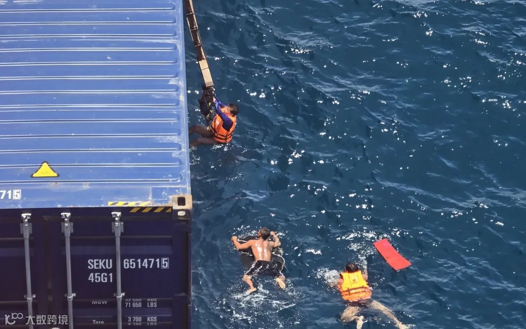 在姜伟船长的统一指挥下,船舶右舷1号救助艇迅速释放,快速驶向落水人员,引导他们靠近右舷船中位置,接应船员通过引水梯将3人成功救起。大副通过简单交流安抚惊魂未定的泰国落水者,并仔细查看他们的身体状况,在确认被救人员身体和精神状态正常后,船员们贴心地为他们提供了饮用水和食物。