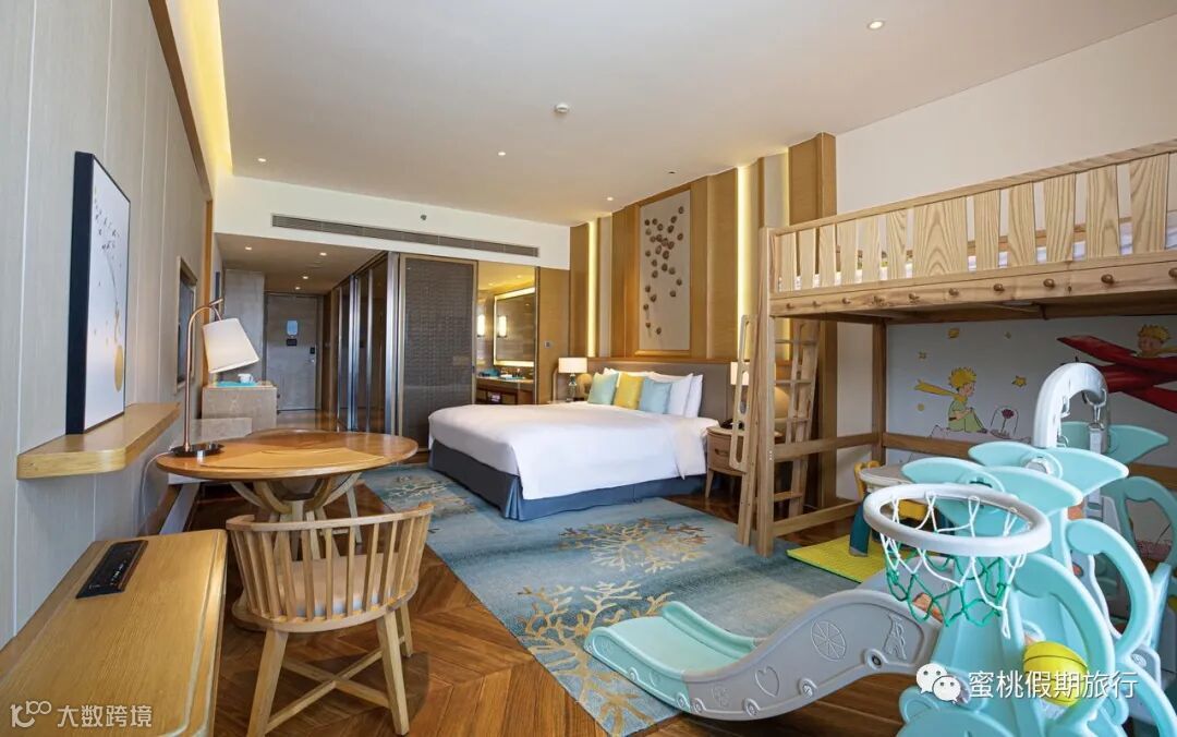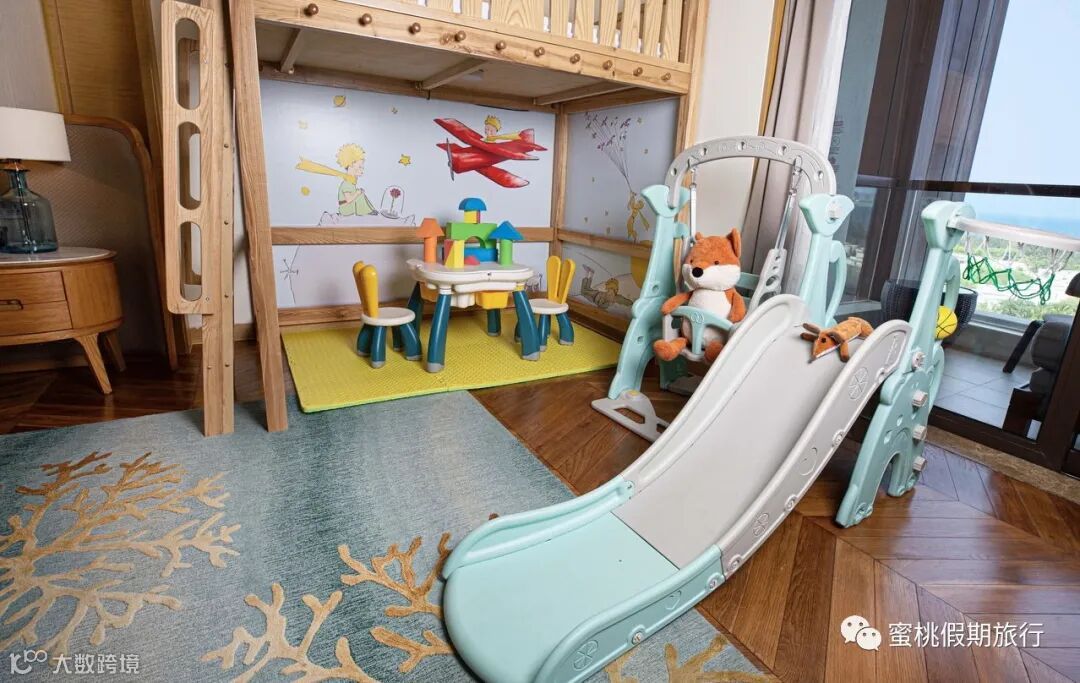 怕晒太阳就来酒店的儿童俱乐部玩吧,粉色的棉地板,踩在上面软软的。里面除了适合小宝宝玩的积木、水床之外,还有适合大孩子玩的各种攀爬滑梯、蹦床和卡丁车。宝贝待上一天也不无聊~
