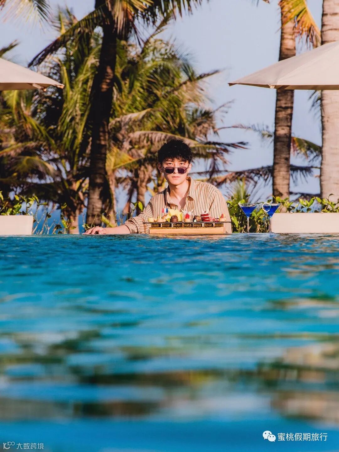 理文索菲特的无边界主泳池在整个泳池的最外延,靠近沙滩和海边,直面海棠湾一线海景,泳池、海水和天空连为一体,映入眼帘的是一片碧蓝,超美!