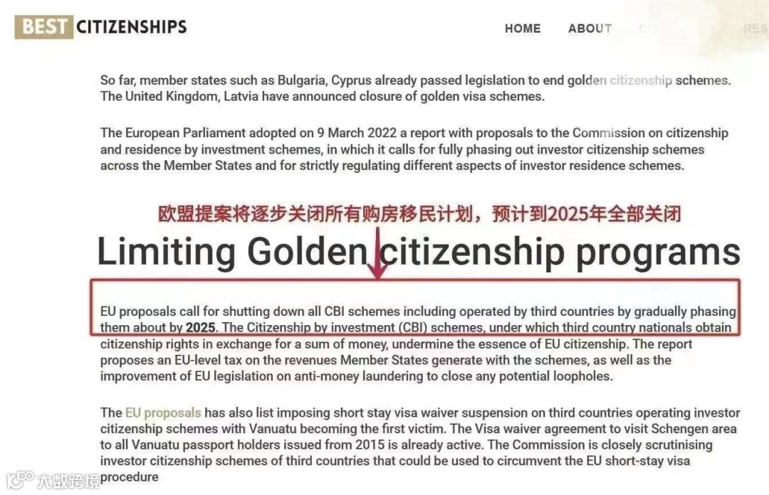 22年3月,欧洲议会就曾通过了一份报告,敦促欧盟国家在2025年前终止“投资入籍计划”,收紧“黄金签证计划”。