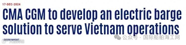 达飞集团已在液化天然气集装箱船方面投入大量资金,以推行环保举措。海事服务网CNSS获悉,17日,该集团将开发一种独特的电力货运驳船,用于越南内陆服务。该驳船预计将于2026年开始投入运营,将使用电池和专用绿色发电站运行,为越南的货运和物流脱碳提供创新解决方案。第三届2024年电动船产业创新发展上海论坛暨024年船舶海工电气技术创新发展上海国际论坛将于2024年12月26日-27日在上海举办。会议报名 meetchinamkt@163.com 或 china@ishipoffshore.com