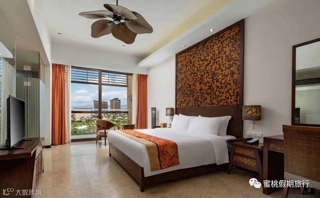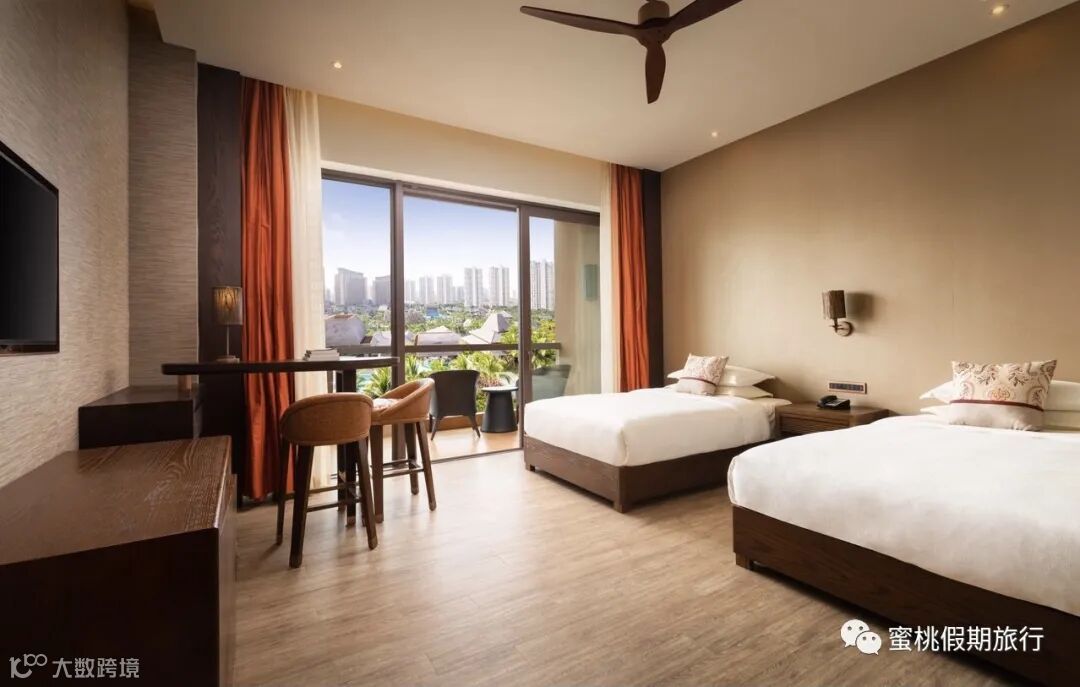 是三亚湾红树林度假世界的康养酒店。房内高贵雅致的桃木装饰增添了浓郁的康养度假氛围,宽大舒适的瞰景阳台,空中园林泳池、菩提早餐厅、今日艺术汇等设施为您构筑专属私密的康养度假空间