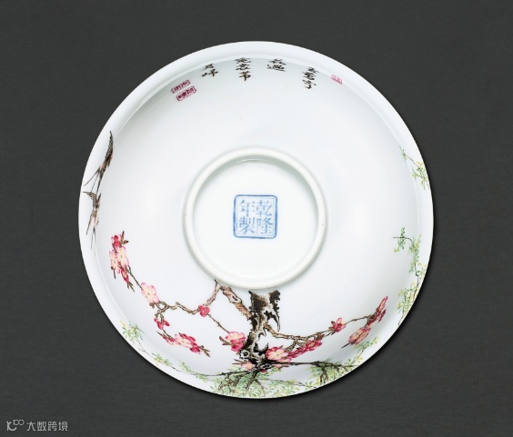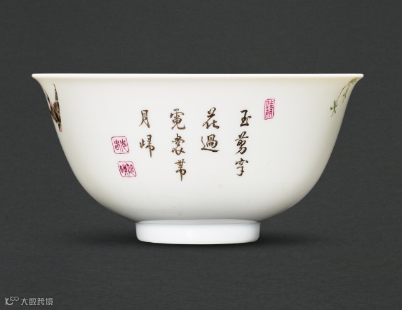 珐琅彩瓷,始创于康熙一朝,专供御用或皇室玩赏,成本高、产量少,连得宠大臣也不会轻易赏之,在芸芸清朝瓷器中最为顶级,而集合诗、书、画三种元素的,则更是矜贵,古董界称为「古月轩」,本盌便属此类。