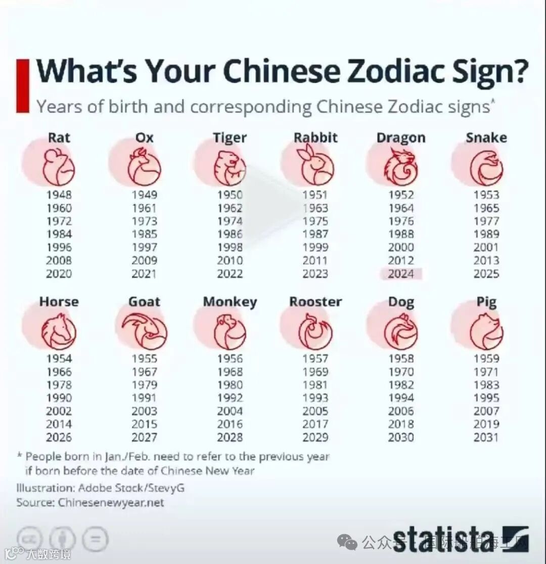 上图表中特别说People born in Jan/Feb.need to refer to the previous year if born before the date of Chinese New Year。