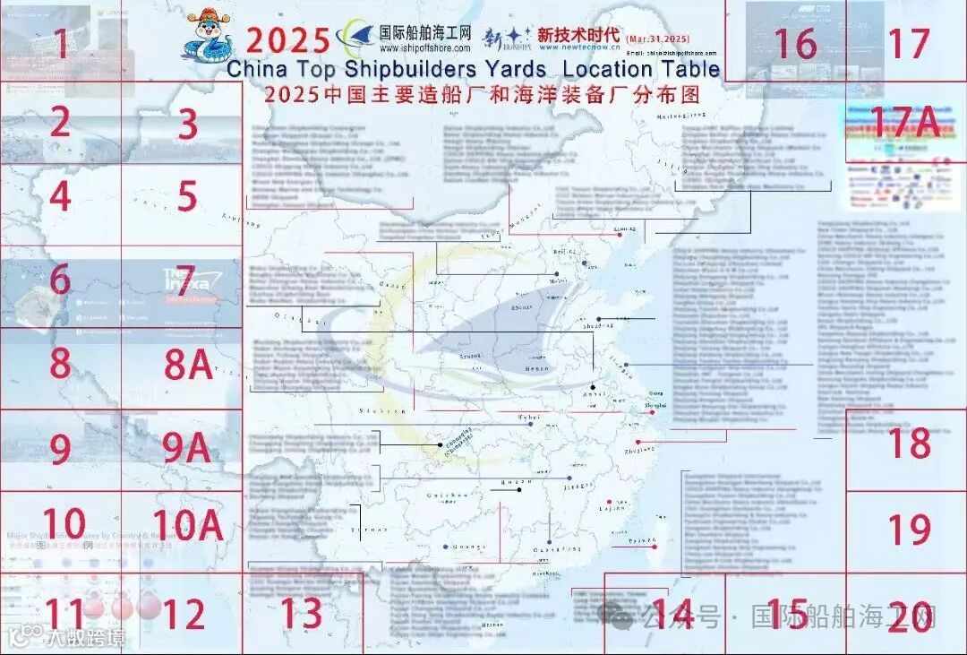同时,排列有600多家中国造船厂的中文和英文版2025中国造船和海洋装备的地图也开始出售,格式如下: