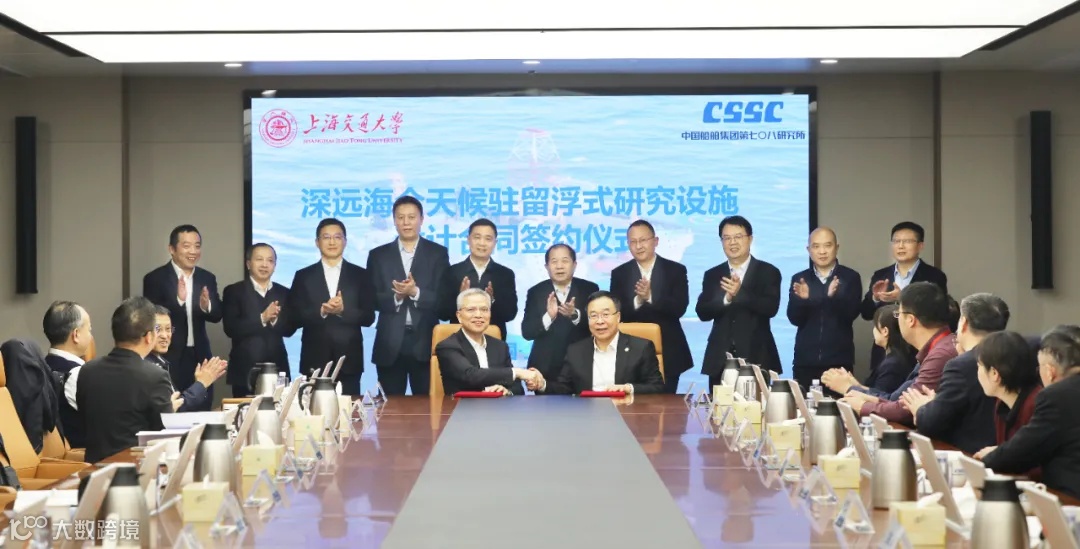 12月13日,中国船舶集团第七〇八研究所与上海交通大学在上海签订深远海大科学设施设计合同。中国船舶集团党组成员、副总经理王征,中国工程院院士林忠钦出席签约仪式,上海交通大学常务副校长奚立峰,中国船舶集团经济运行部主任王永良,中国船舶集团第七〇八研究所所长卢霖、副所长朱建璋,以及上海市发改委、中国船级社、上海交易集团、外高桥造船、中国海工、中船海舟等单位相关领导出席仪式。