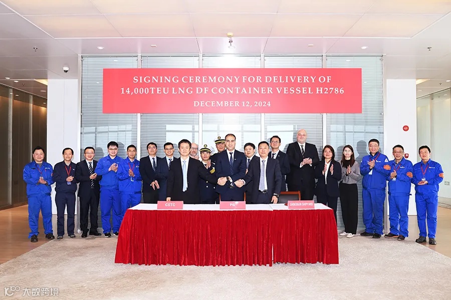 12月12日,中国船舶集团旗下江南造船为太平船务公司建造的14000TEU LNG双燃料集装箱船系列船第二艘(H2786船)正式签字交付,该船于10月15日与该系列首制船同日命名,其建造周期延续了首制船“8/3/3.5”生产节律,进一步巩固了公司大型双燃料集装箱船建造模式。