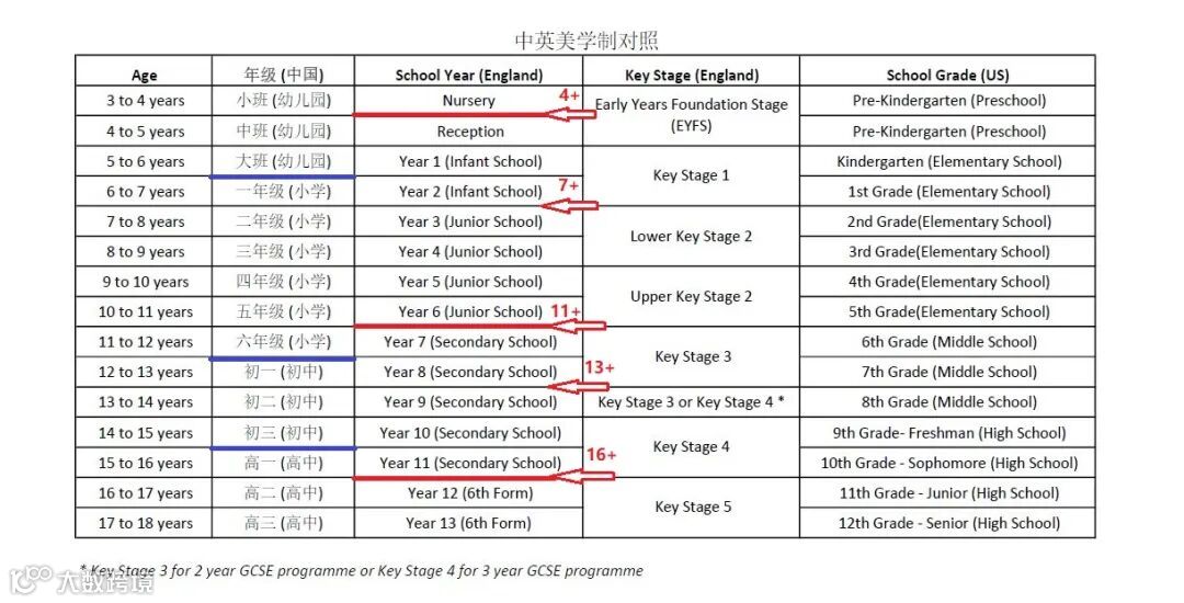 7+和13+则因为历史的关系,分别是一些预备学校(preparatory school)和部分私立男校的入学点。