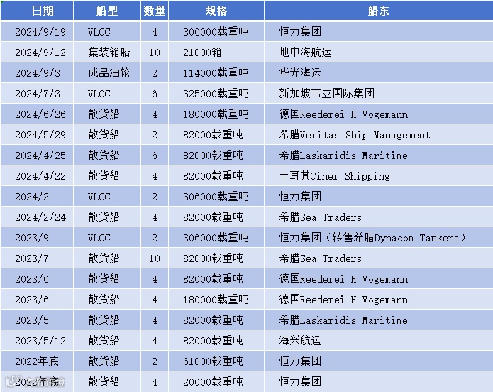 恒力重工自2022年第四季度重启造船业务以来的有公开报道的新造船订单,来源:船队经理网