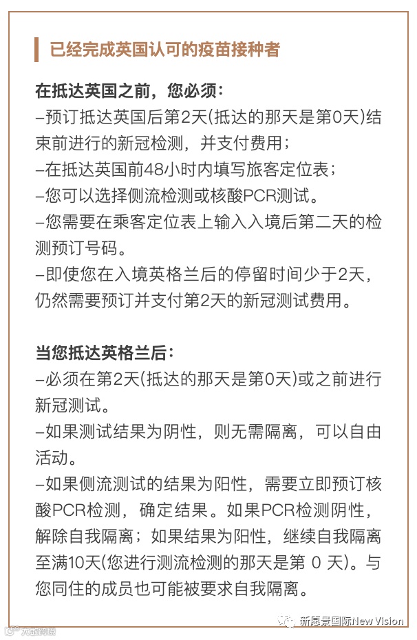 目前,英国已经承认并接受来自中国香港、台湾的完成疫苗接种者入境免隔离。