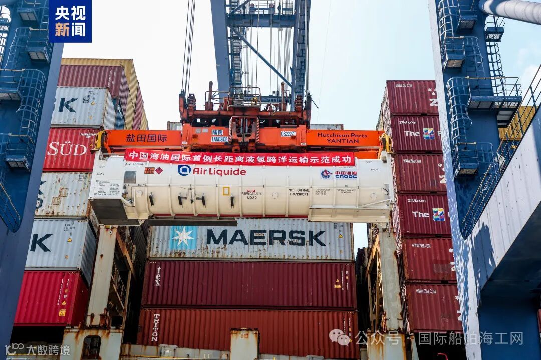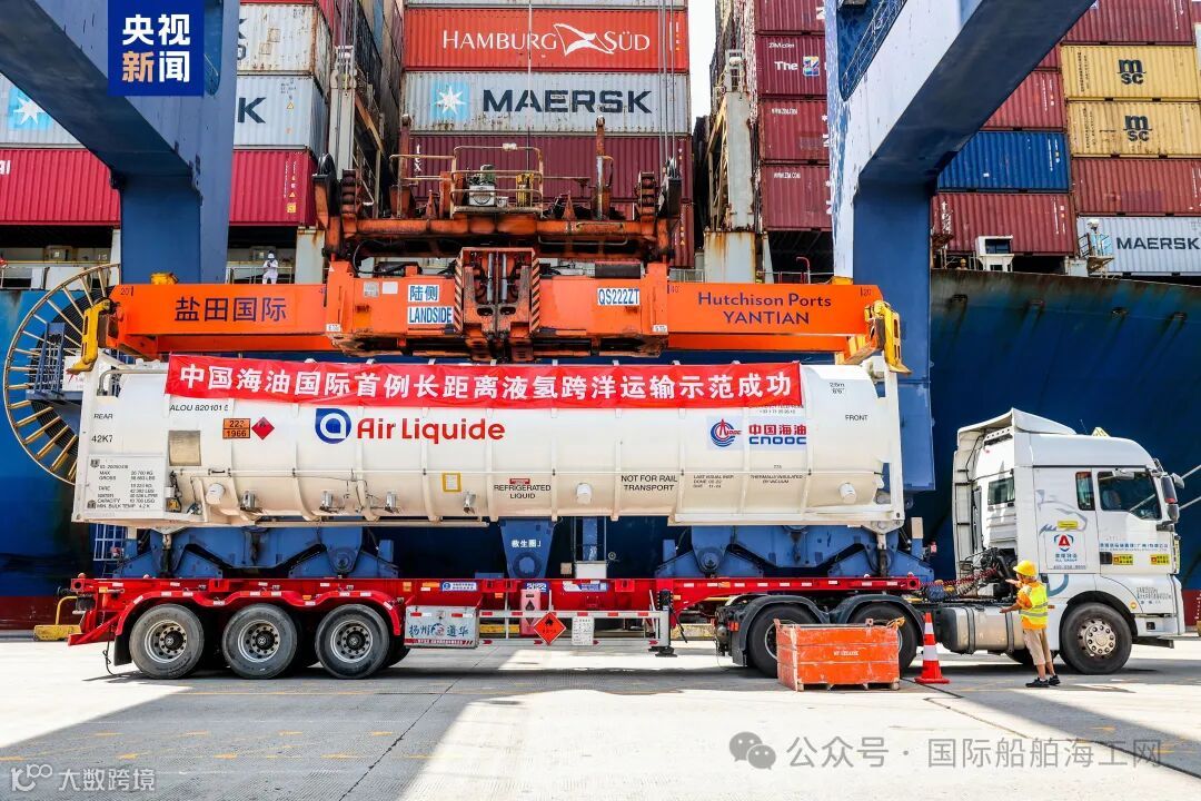 此次跨洋液态氢运输示范工程,采用保冷的罐式集装箱装载。货船于当地时间9月4日从欧洲鹿特丹港装船,经由大西洋至好望角再到马六甲海峡,最终抵达深圳盐田港,完成首船吨级以上液态氢长距离跨洋运输。