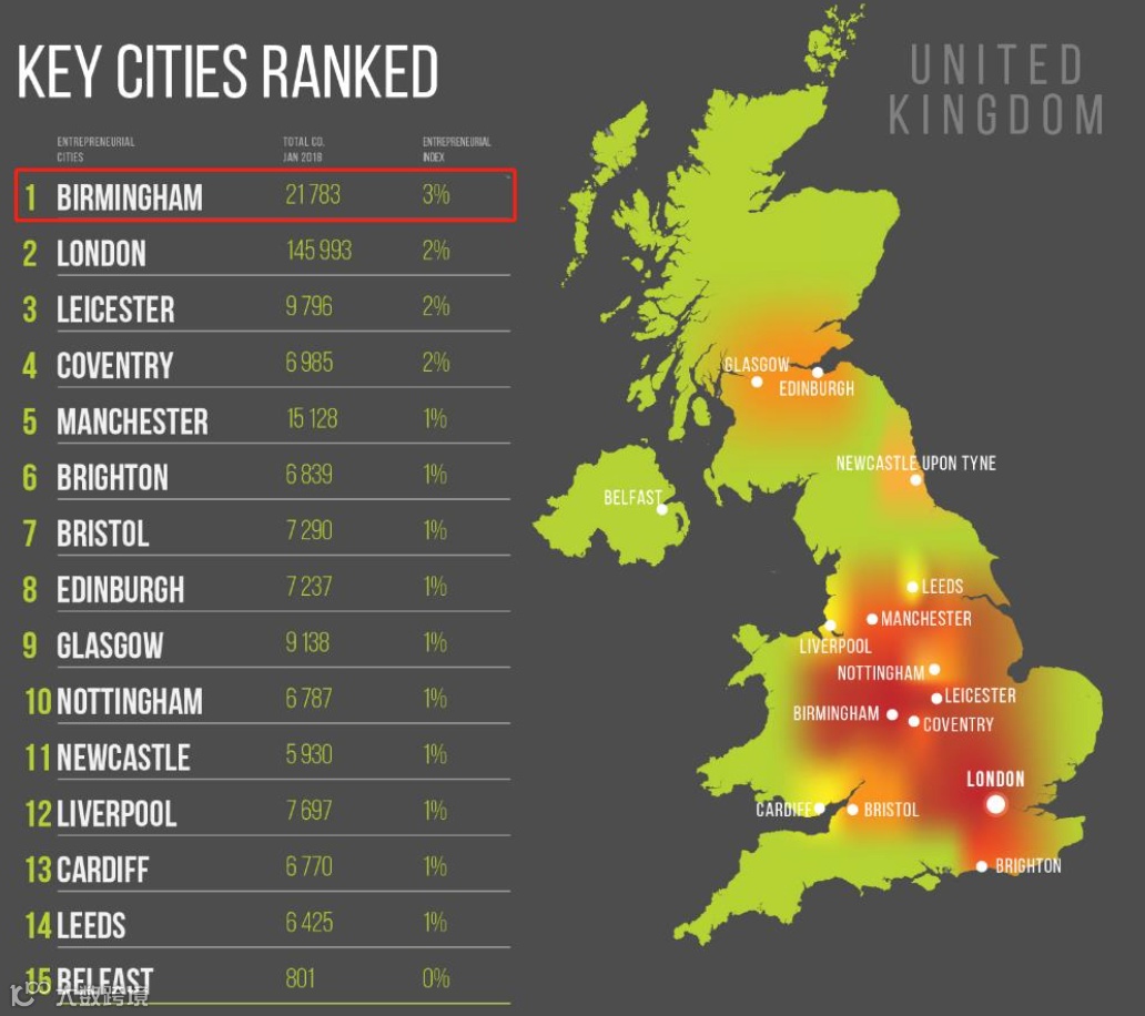 2,由于交通便利、政府政策扶持、大力基建等原因,伯明翰已经成为全英最受欢迎的创业城市。