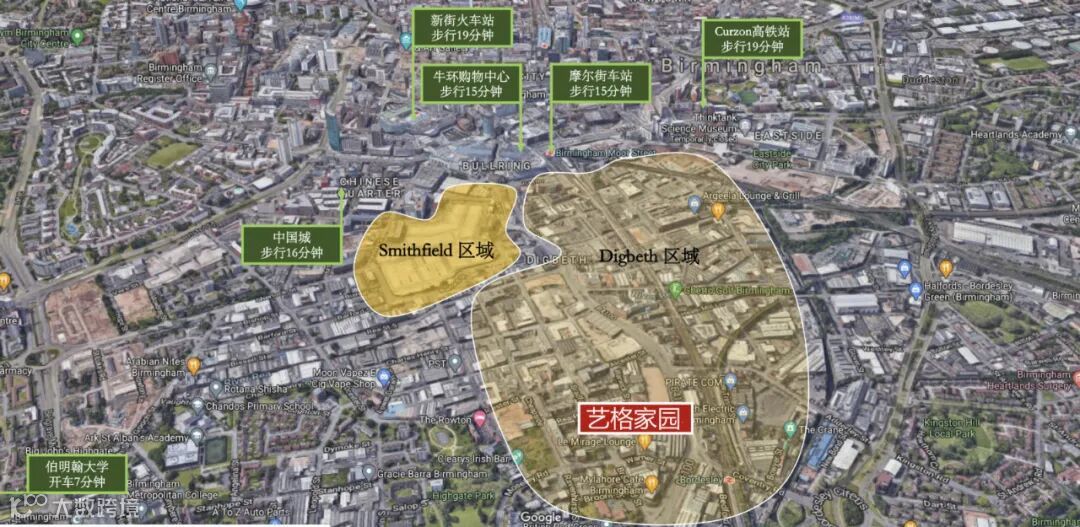 艺格家园项目位于Digbeth区,该区是伯明翰最具鲜明特征的区域,距牛环购物中心、新街车站等重要地标步行20分钟以内。
