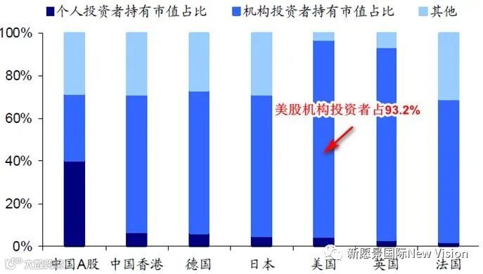 你知道吗?早在20世纪中叶,也就是七八十年前,散户持有美股超过90%,不过根据海通证券研报显示,2018年年中,这样的情况已经是大反转,美国机构投资者持有市值占比高达 93.2%,个人投资者持有市值占比不到6%。