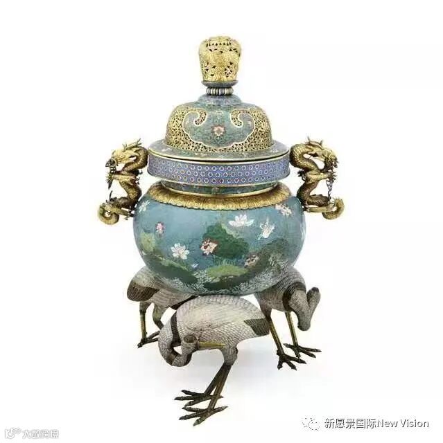 铜胎掐丝珐琅鹤足龙耳特大香薰
