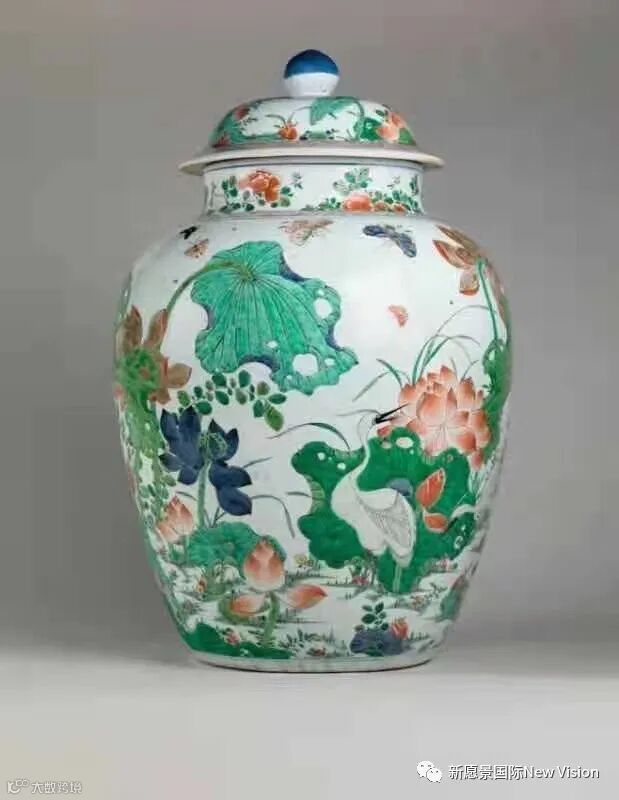 五彩莲池鹭丝图特大将军罐