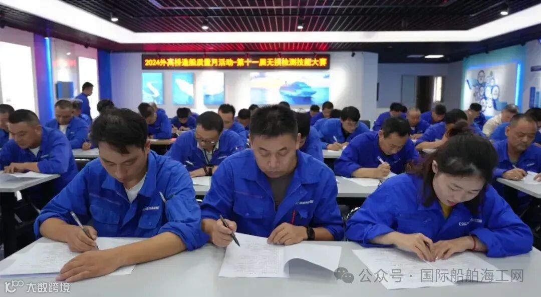无损检测是保证焊接质量的重要检测技术手段。本次竞赛分为专业理论知识考试和实操技能水平考核两部分,围绕焊接现场检测的实际应用展开,共有50位选手参赛,覆盖外高桥造船和外高桥海工的持证检测人员以及生产自检人员,特邀江南造船、沪东中华、船舶工艺研究所、中国船级社实业公司等专家担任裁判进行评审。
