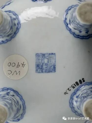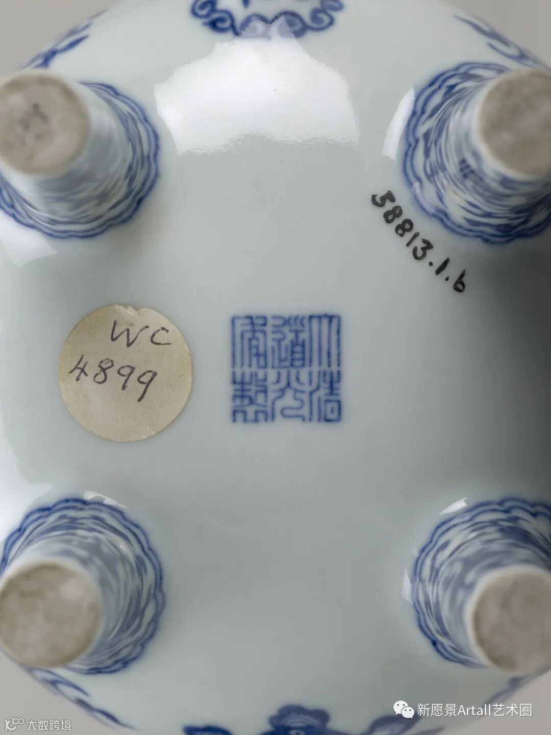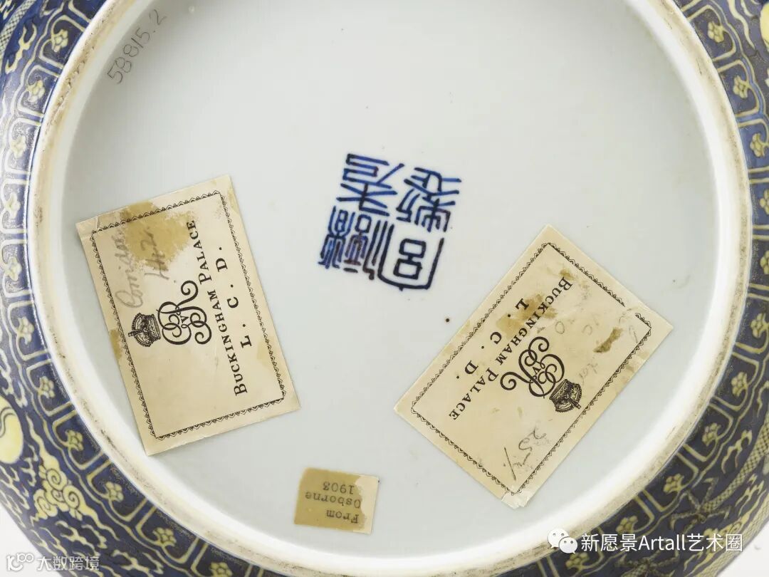 底部有一标签印着’GEORGE-EUMORFOPOULS',George Arisitides Eumorfopoulos (1863-1939)是伦敦著名古董收藏家,也是东方陶瓷协会的创始人