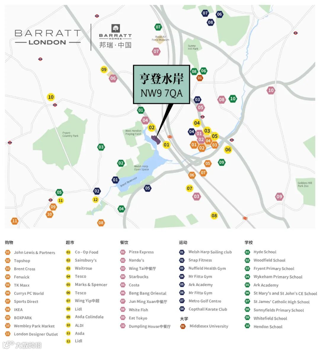 亨登水岸得天独厚地占据伦敦重点升级区(Regeneration Area)——亨登布伦特十字升级区的临湖地块。2020年10月,Barnet Council巴内特区政府宣布将投入£55亿英镑升级本区域,将这里建造成为一个现代化、多功能的大型湖畔公园商圈。
