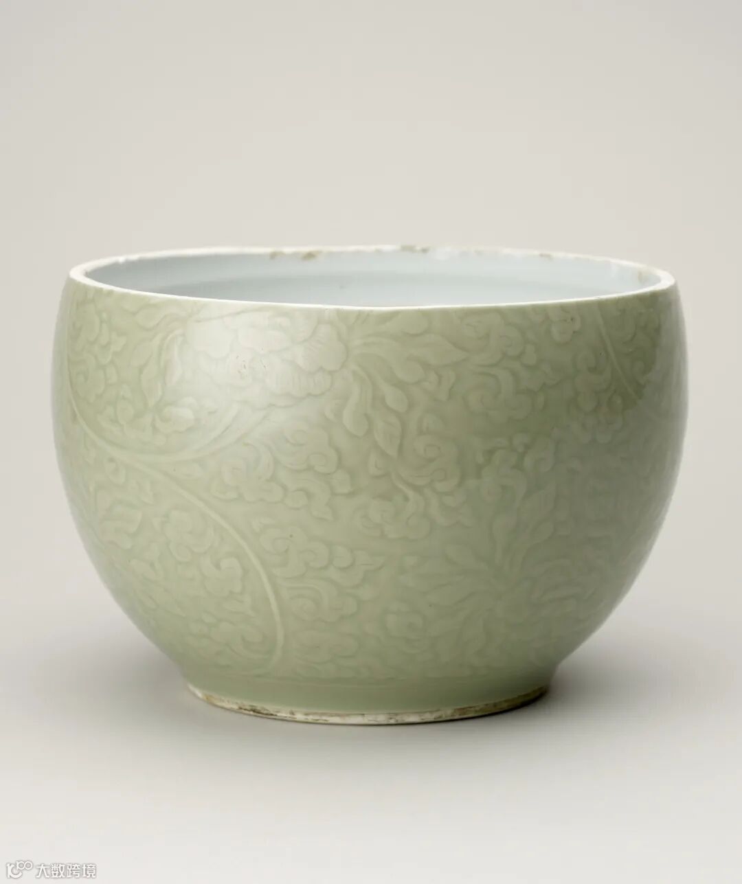 此类康熙豆青釉暗刻瓷器为仿明龙泉窑工艺,这种工艺在17世纪被景德镇瓷厂采用;从康熙年间(1662-1722)开始,这种风格的瓷器大量生产,经常带有网纹装饰。他们是巴黎商人最追捧的铜鎏金镶接中国艺术品,结合英格兰的制造工艺,成为中国瓷器在欧洲被加以铜鎏金镶接的典范。