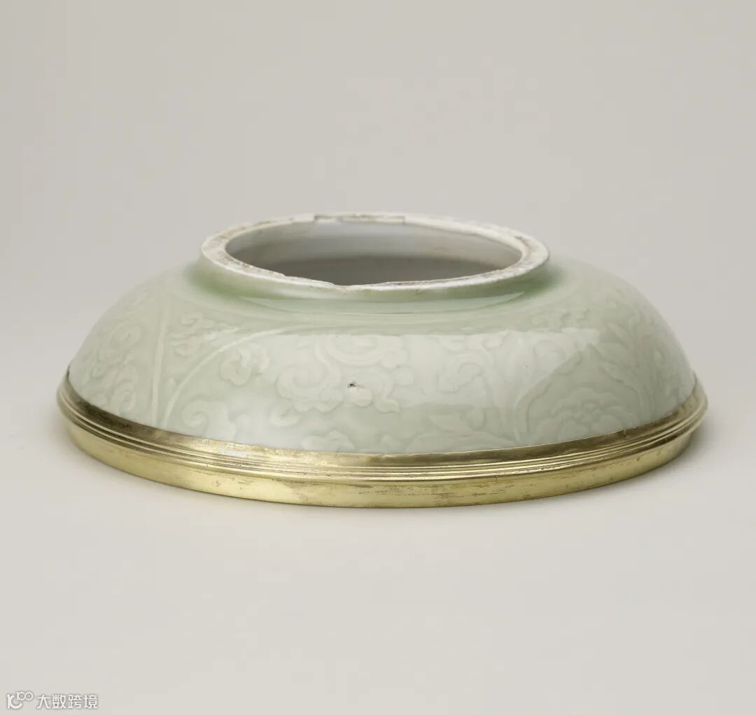 加了铜鎏金饰件的龙泉青瓷盘