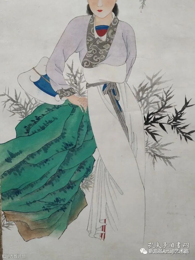 比如我们来看张大千的人物画,大千先生用的线条是我们讲的高古游丝描,也就是大英博物馆里顾恺之的那幅女史箴图用的那种线条,也就是说一根线条的粗细的变化并不大,而是强调线条像游动的丝线一样的质感。