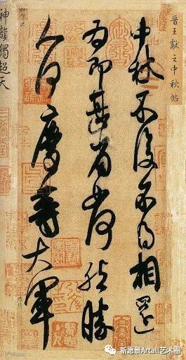 所以大家可以看到隋唐笔和现代笔写出来的笔痕的不同,也正是因为这一点,当时徐邦达先生才判断清宫旧藏的王羲之大道贴和王献之的中秋帖不是原作。