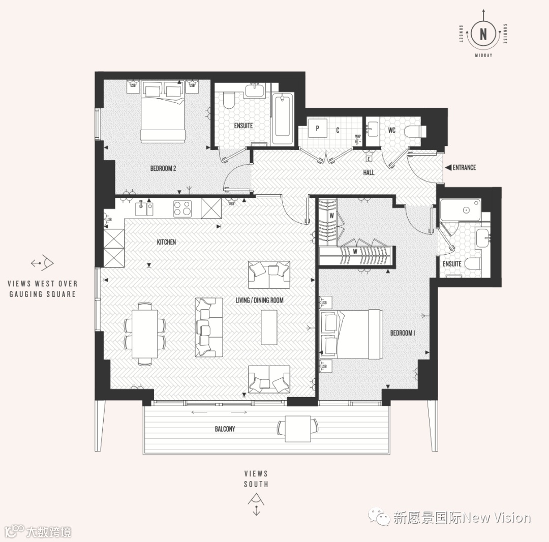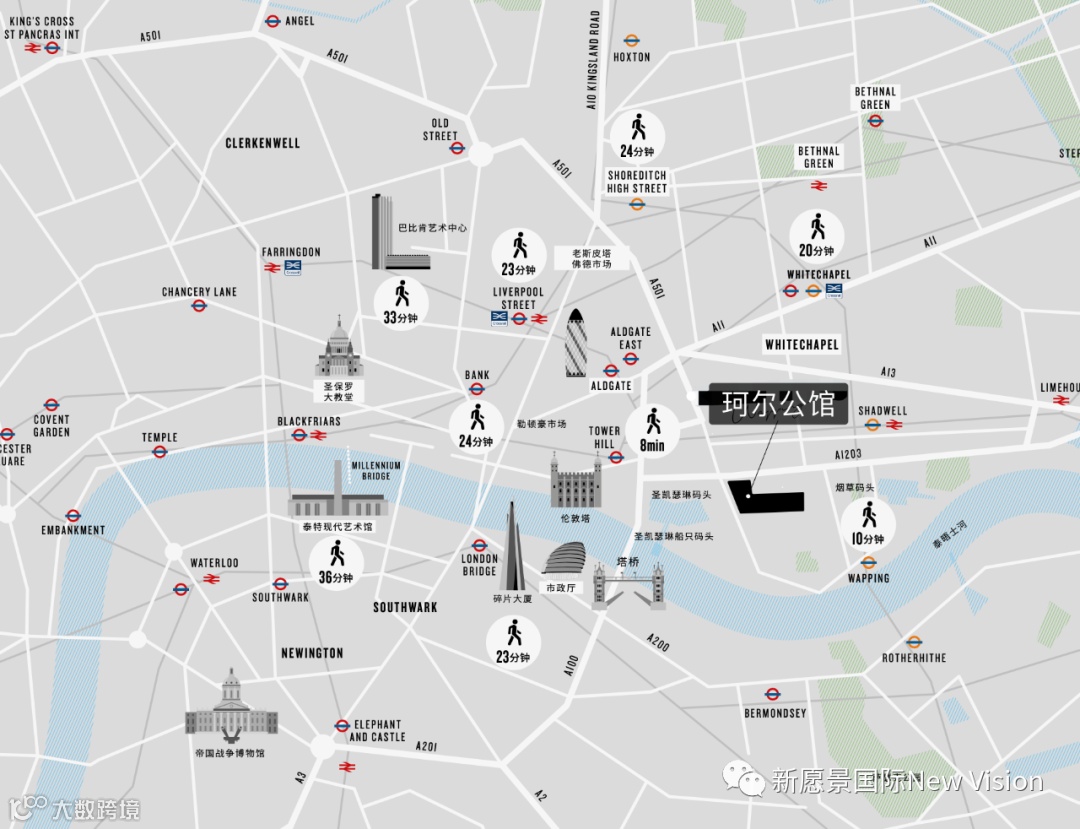 而项目东面2.7英里外的金丝雀码头是伦敦的第二大金融中心,包括HSBC银行, 花旗银行,德意志银行等欧洲总部都在这里。