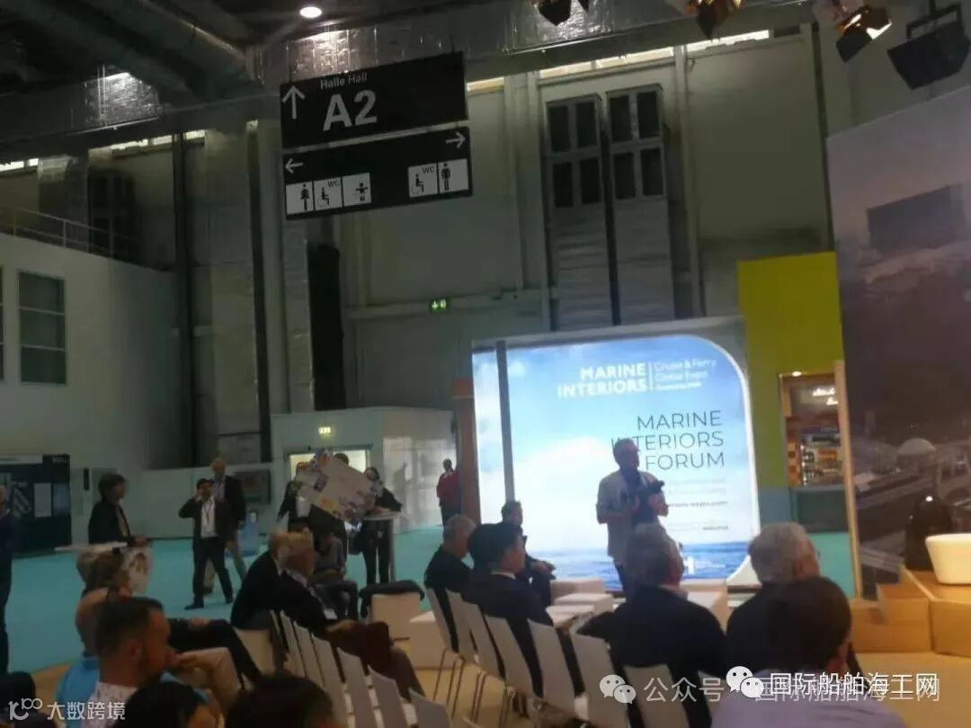 上图为国际船舶海工网李保坤在德国汉堡展会上介绍“中国邮轮客滚船造船厂分布图”