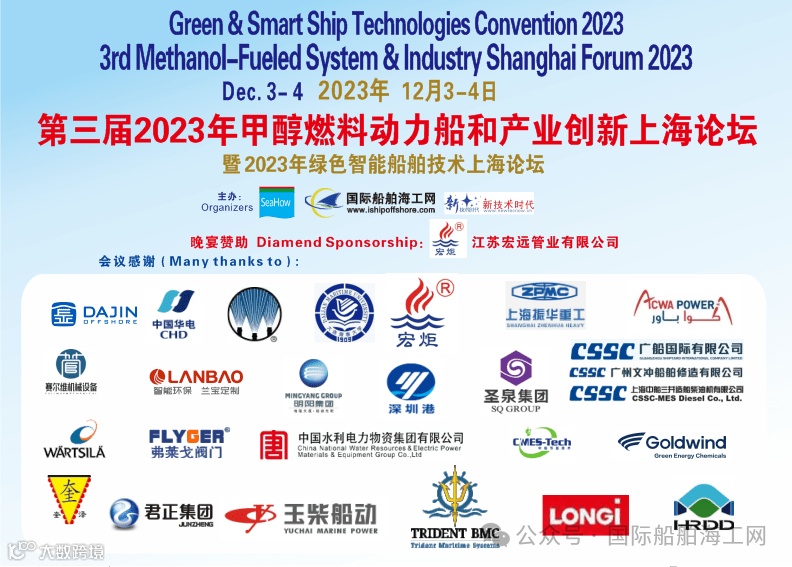 在成功举办了前3届甲醇燃料船和甲醇产业上海国际峰会基础上,围绕全球绿色低碳产业、甲醇燃料创新发展的趋势、机会和挑战,更大规模、更高规格的“第四届2024年甲醇燃料动力船和甲醇产业创新发展上海论坛暨2024年绿色智能船舶技术上海论坛和第三届2024年碳捕捉、储运和利用产业创新上海论坛”将于2024年6月3-4日在上海市举办,中外代表将纷纷汇聚上海交流,会议咨询报名:meetchinamkt@163.com 或者 china@ishipoffshore.com