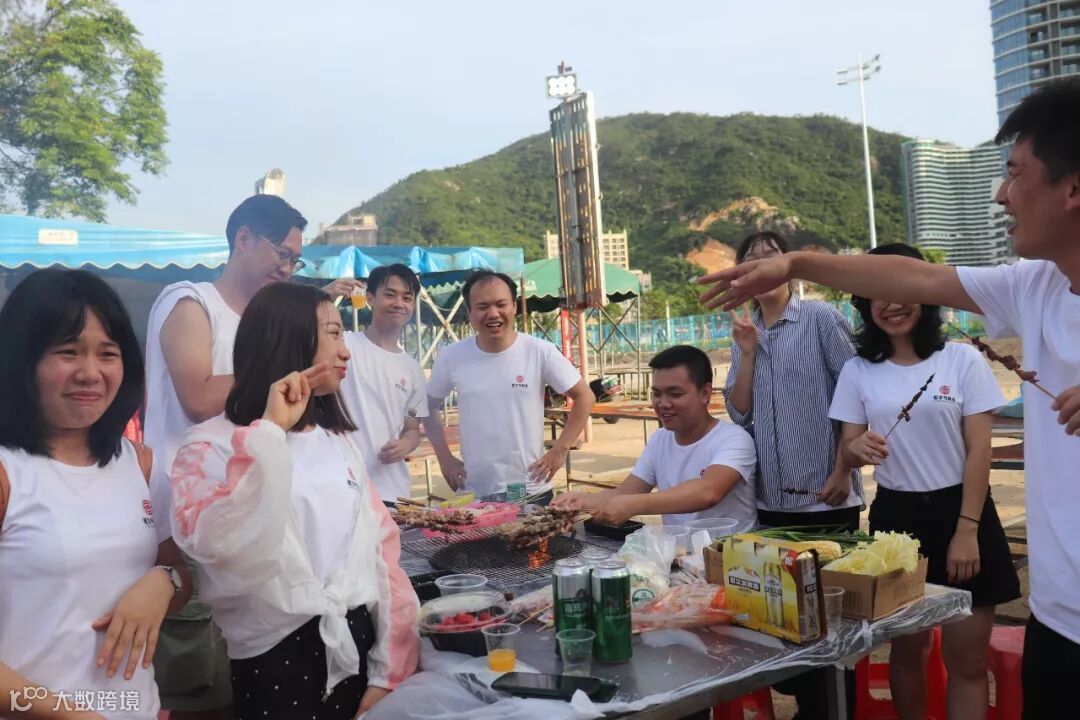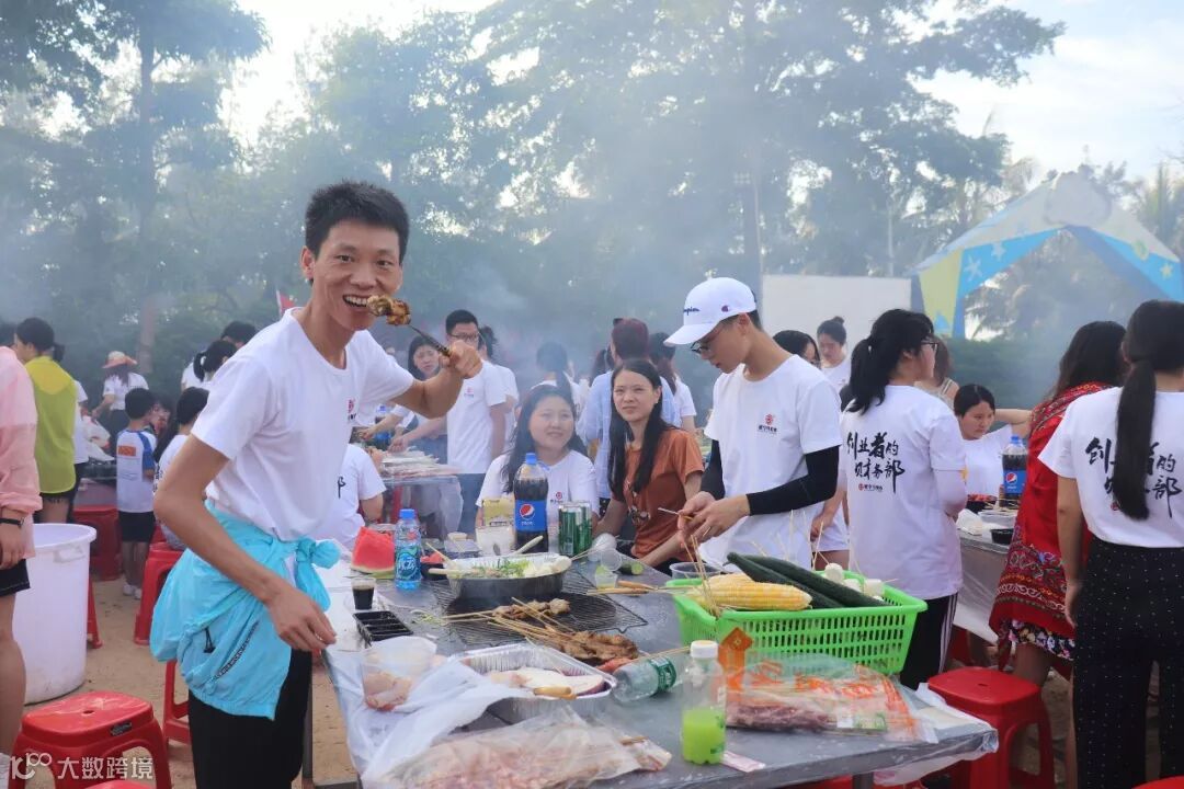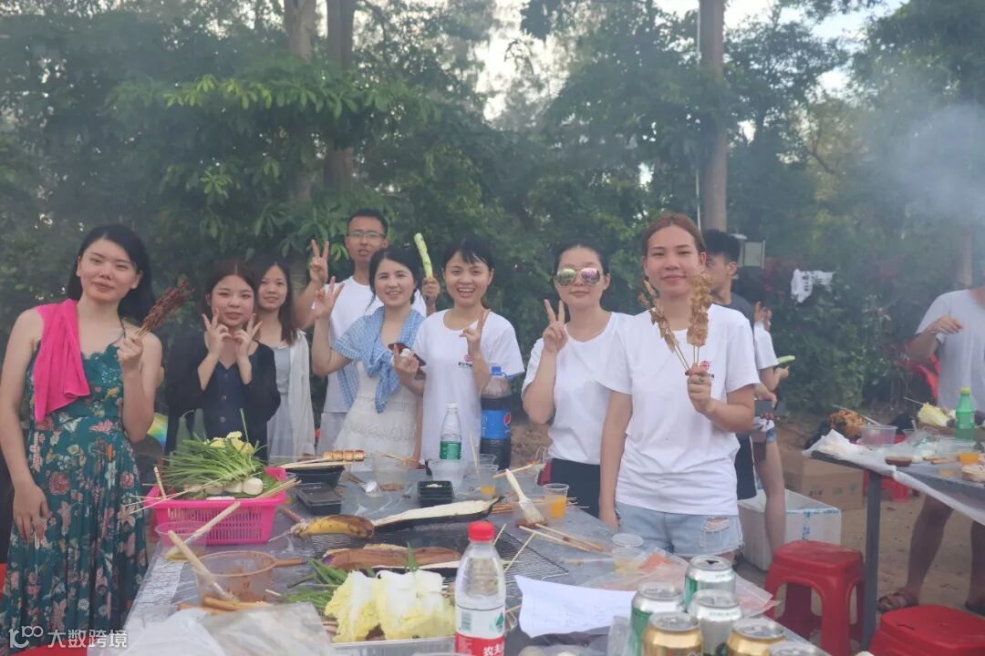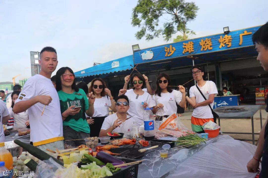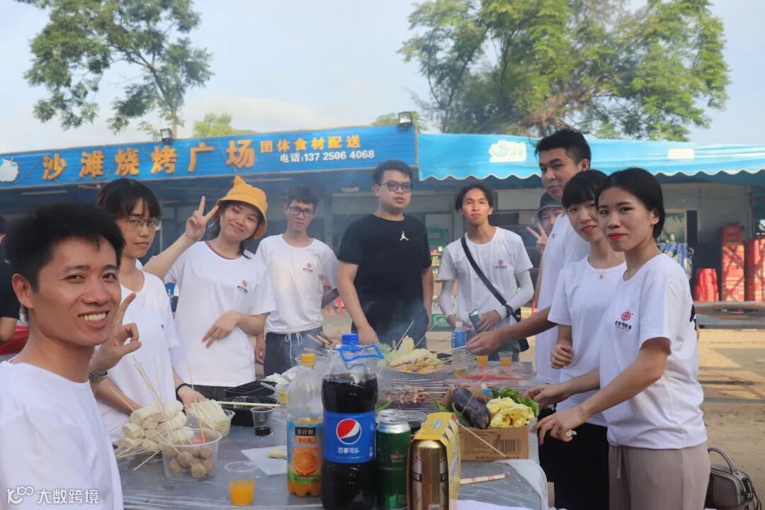 下午五点迎来了今天活动的重头戏---烧烤,这是一场高端大气上档次的烧烤,我们主办部门井井有条的将各种食材摆放整齐,就连我们的调料也是专业碗装,牛肉串,羊肉串肉类食材吃到撑。准备工作完毕,大家把鸡翅、火腿肠、豆干等摊在烤架上,各展身手,烧烤大厨们一边烤食物一边上调料,一手拿刷子刷油,一手拿叉子翻滚,而遇到旁边的小朋友时不时提醒该刷油啦、该翻面啦,一步步指导,不一会儿,阵阵烤肉的香味四溢。实在是抵挡不住烤肉的诱惑,很快,一个个成品一出来就被洗劫一空,尤其是烤鸡翅,那叫一个美味。