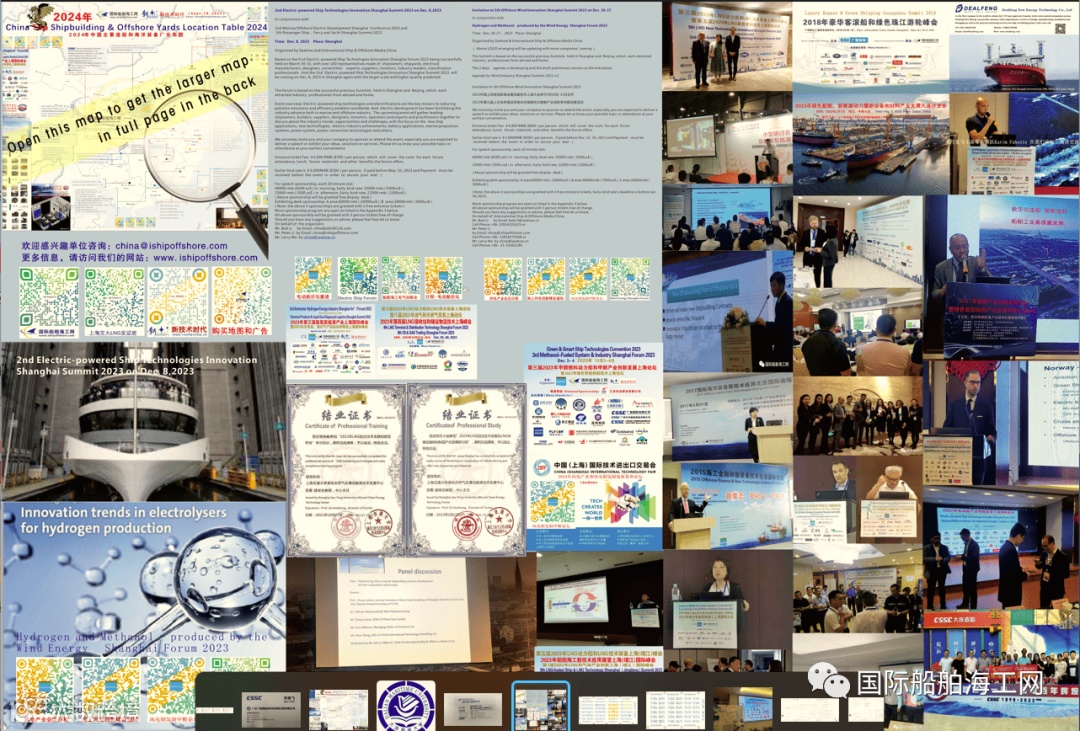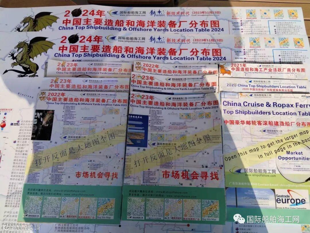 同时新的全英文版2024年专版中国造船厂地图,将在2024年4月、6月和9月的新加坡、希腊和德国SMM等展会上继续分别按特版印刷赠送,现在开始招商,欢迎感兴趣单位尽快锁定地图广告位置。