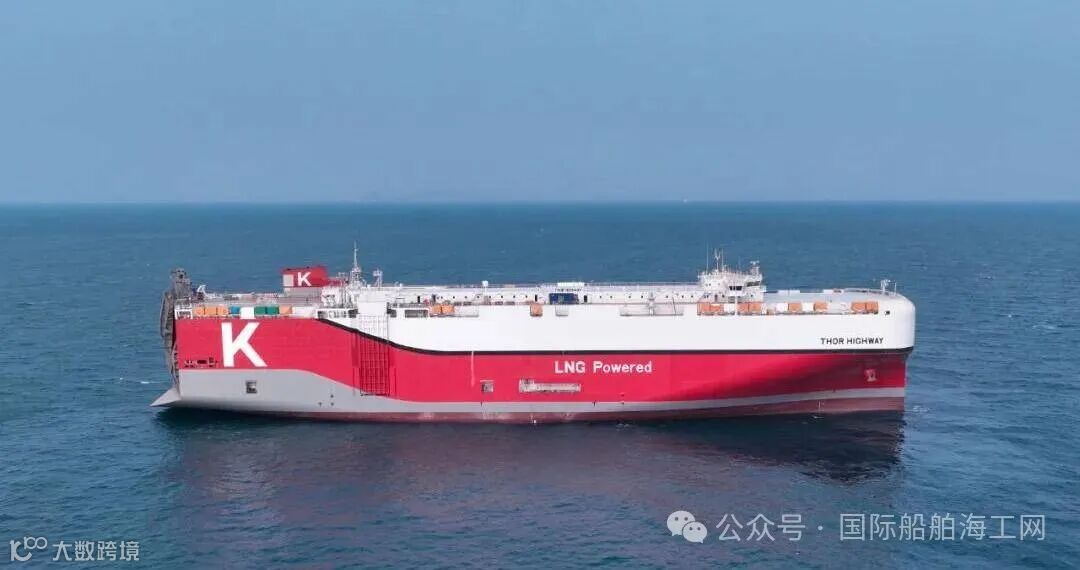 车LNG双燃料汽车运输船(PCTC)4号船“托尔 海薇(THOR HIGHWAY)”号船签字交船,比合同交船期提前了超过1个月
