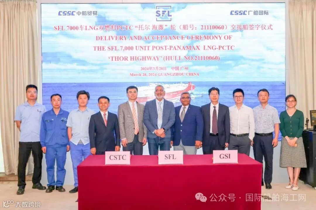广船国际为挪威SFL建造的LNG双燃料汽车运输船交付。4月23日上海交流