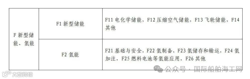 氢能方向包括F21 基础与安全、F22 氢制备、F23 氢储存和输运、F24 氢加注、F25 燃料电池等氢能应用、F26 其他。