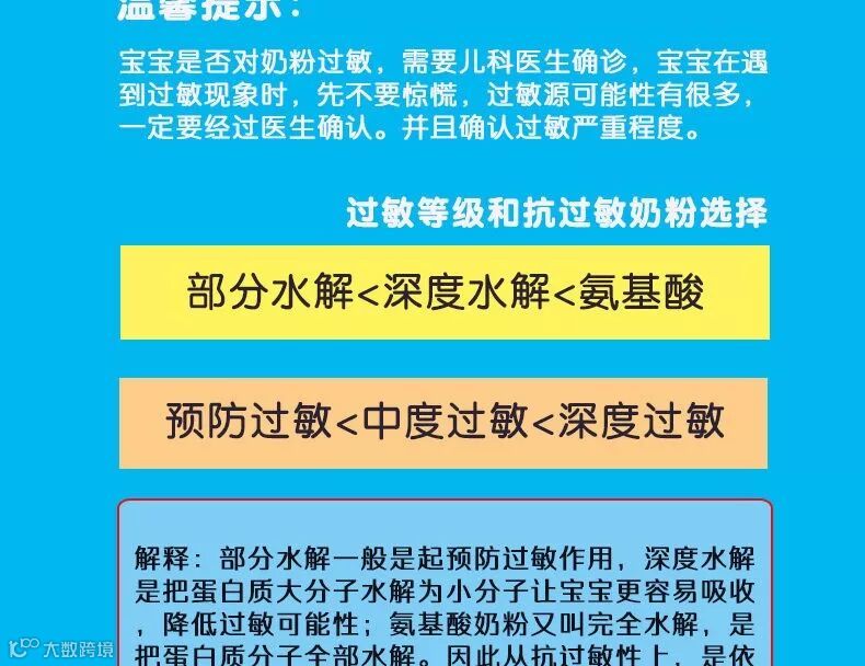 懒大象温馨提示:宝宝喝奶粉出现呕吐、腹泻、过敏等症状,需要第一时间找医生确诊,确定过敏源。如果您的宝宝对蛋白质过敏,我们建议您选择使用深度水解和氨基酸奶粉进行喂养!