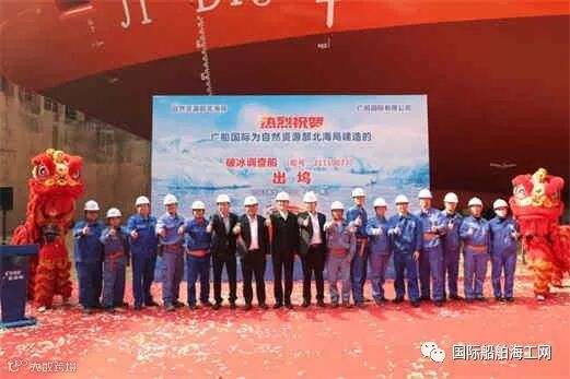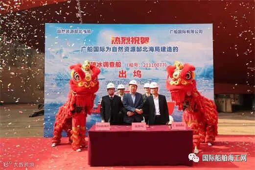 自然资源部北海局分党组书记、局长杜继鹏、中国船级社广州分社副总经理韩学超、广船国际党委副书记、总经理陈激,副总经理康友平等领导参加出坞仪式,仪式由广船国际副总经济师李涛主持。