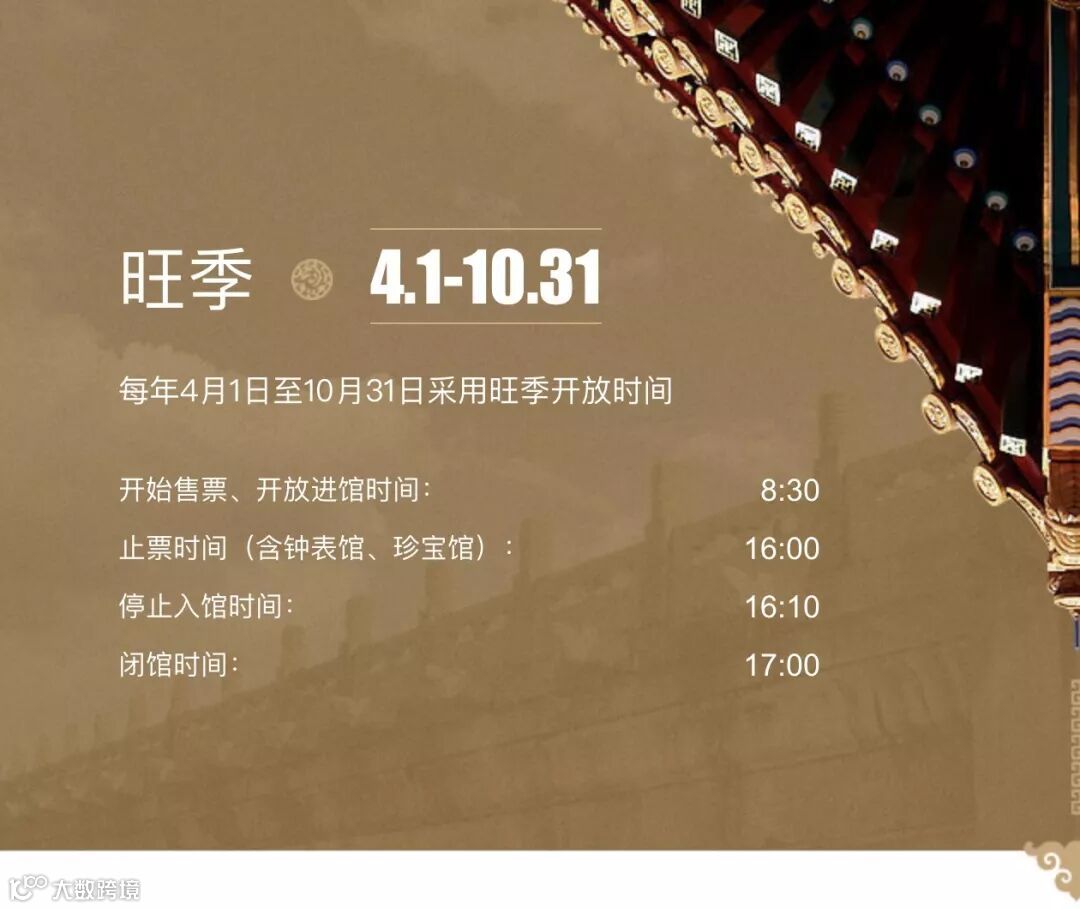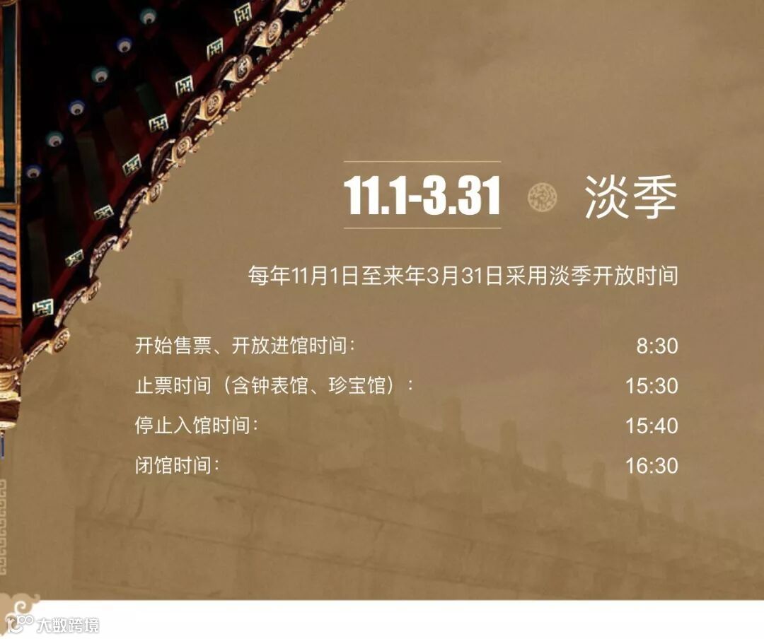此外,故宫博物院全年开放,开放时间按照淡、旺季会有所改变,遇到法定假期也会延长或缩短开放时间,请随时注意故宫官网公告或小千的温馨提示哦