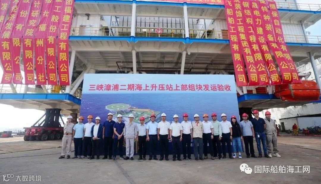 8月16日上午,由福建船政旗下厦船重工建造的三峡漳浦二期海上风电场项目海上升压站上部模块发运仪式在厦船重工隆重举行。次日上午10点,在厦门海事局、厦门港口管理局、厦门引航站等相关单位的大力支持下,该升压站上部组块顺利启航,前往漳州市漳浦二期海上风电场安装运营。