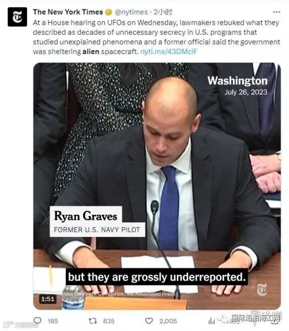作证的3人分别是前F-18飞行员瑞安·格雷夫斯、退役海军指挥官大卫·弗拉沃尔和前情报官员大卫·格鲁施。