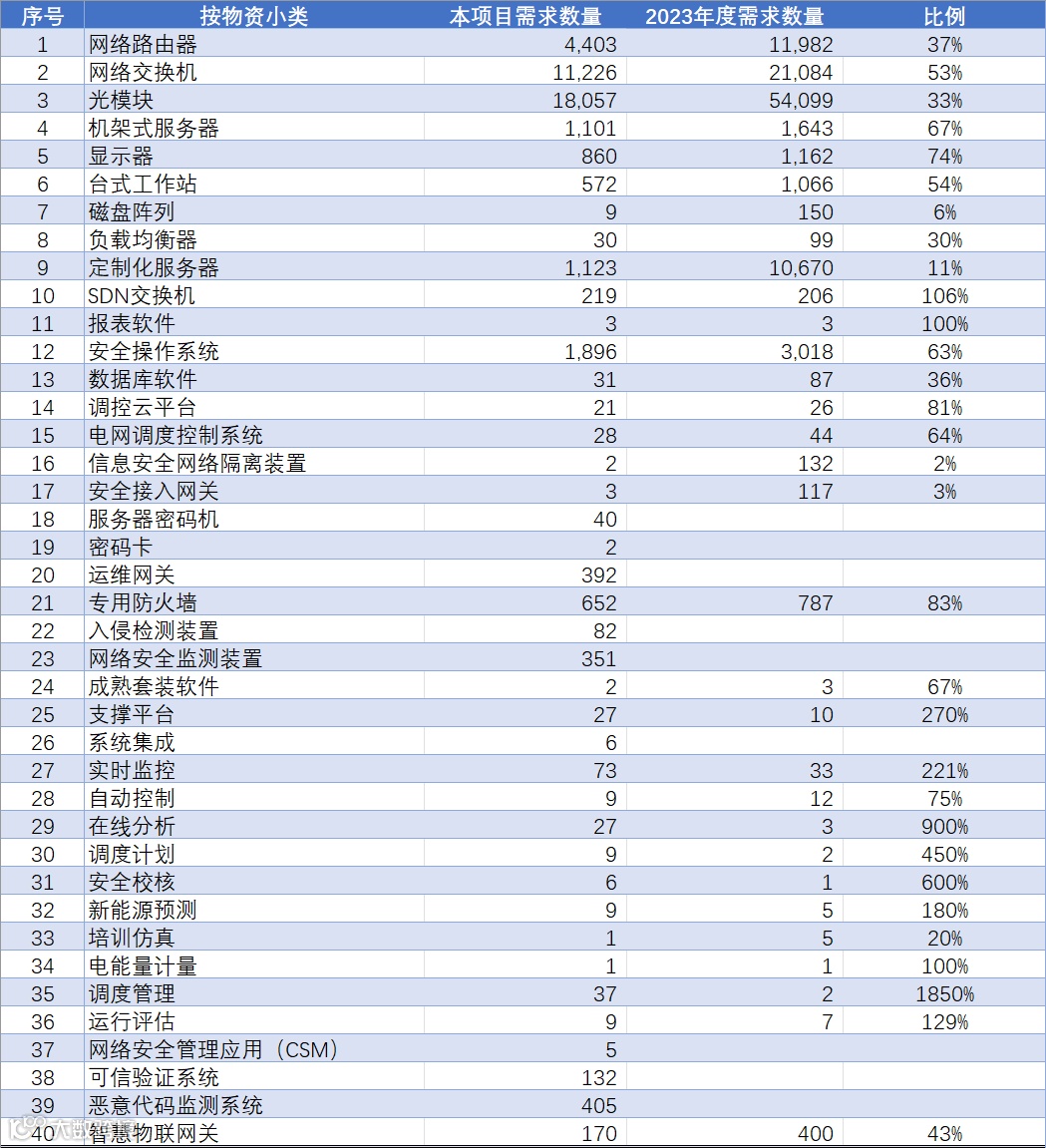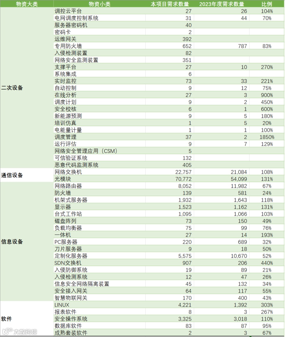 本文统计口径仅指数字化项目(含设备、材料),不含其他类型项目中的相关物资。